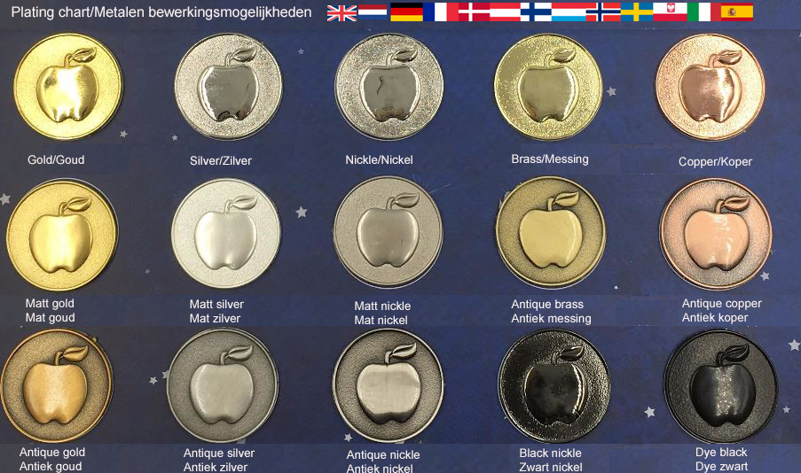 Zinc alloy is used for pins / pins made by an injection molding process. They are most commonly used for double-sided medals, coins and pins / pins with sharp shapes. This is cost efficient with high numbers and a better 3D effect can be realized.